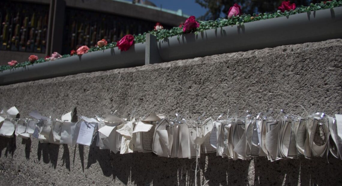 Muro en memoria de muertos por Covid-19 en la basílica de Guadalupe. Foto: Victoria Valtierra / Cuartoscuro