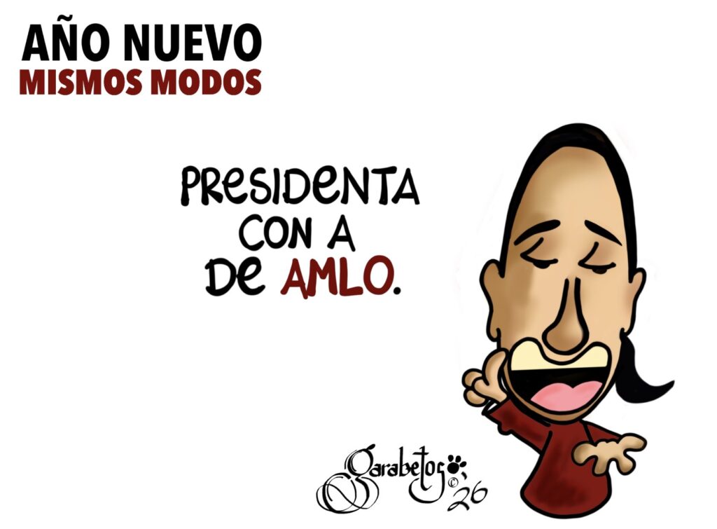 Esta caricatura no ironiza sobre el cargo ni sobre la gramática, sino sobre la persistencia: la de un mando que comienza diciendo “presidenta”, pero sigue conjugando con la voz del que se fue.