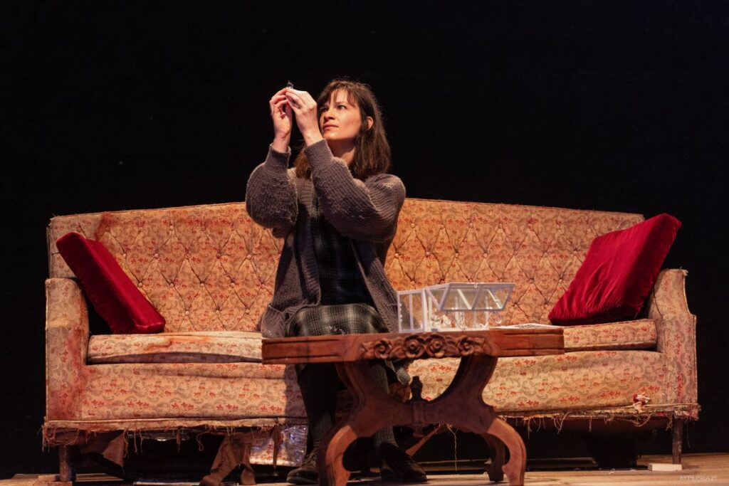 En esta versión, sin dejar de lado los aspectos autobiográficos que atraviesan el texto, el montaje pone el acento en la memoria como estructura dramática, concebida desde la evocación íntima del protagonista. Tom nos abre las puertas de un departamento donde “arde el fuego de la desesperación humana”, mientras su madre rumia el pasado como un “paraíso perdido” y anhela ver a su hija en el altar. Lo recordado no es exacto, sino subjetivo, nostálgico y emocional: una atmósfera más que un relato.